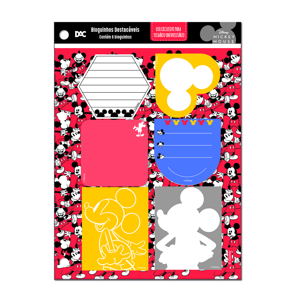 Acessório Para Fichário Universitário c/ 6 Blocos Destacáveis Mickey Mouse- DAC