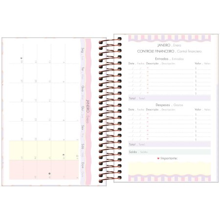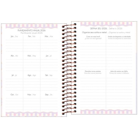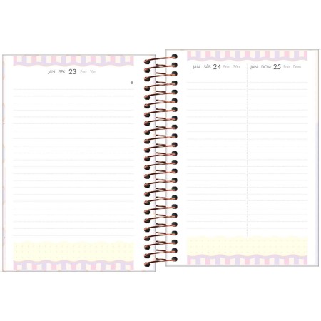 SKU: 38772A Agenda Espiral Diária 12,9 x 18,7 cm Soho 2025 é ideal para a organização do dia a dia. O produto, com visão de um dia por página, exceto sábado e domingo, e folhas para anotações, possui capa dura com parte interna decorada, adesivos, bolsa de papel e 176 folhas.
