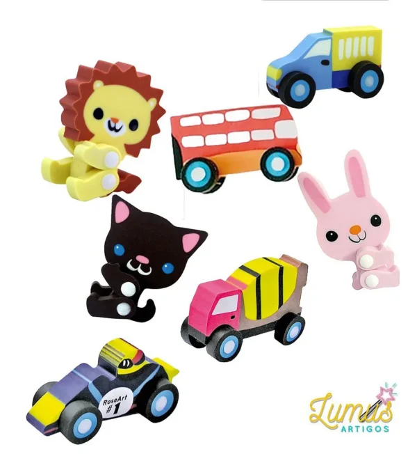 Se você quer borrachas super diferentes, está no lugar certo!! As borrachas Fantasia 3D CiS, além de super fofas, são articuladas, ou seja, elas se mexem!! É possível brincar com elas ao apagar. Os animais mexem os bracinhos e perninhas e os automóveis as rodinhas, não é demais?