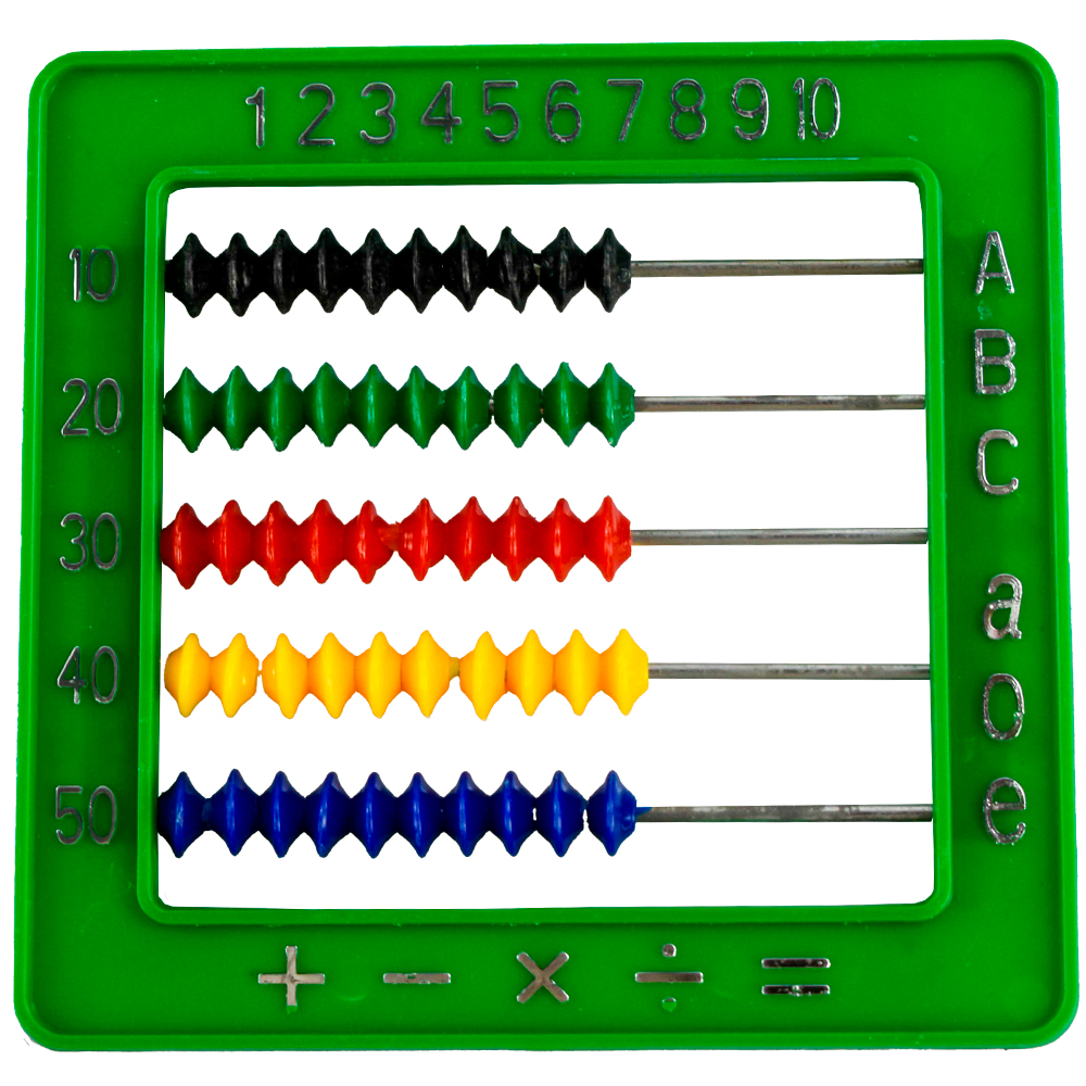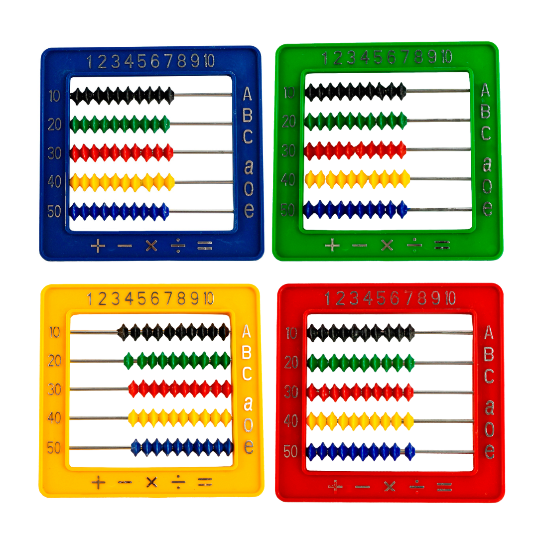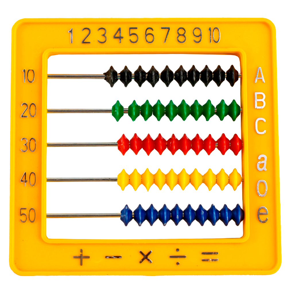 Com 5 hastes organizadas com contas coloridas, o ábaco permite trabalhar noções básicas de contagem, adição, subtração e reconhecimento de quantidades.