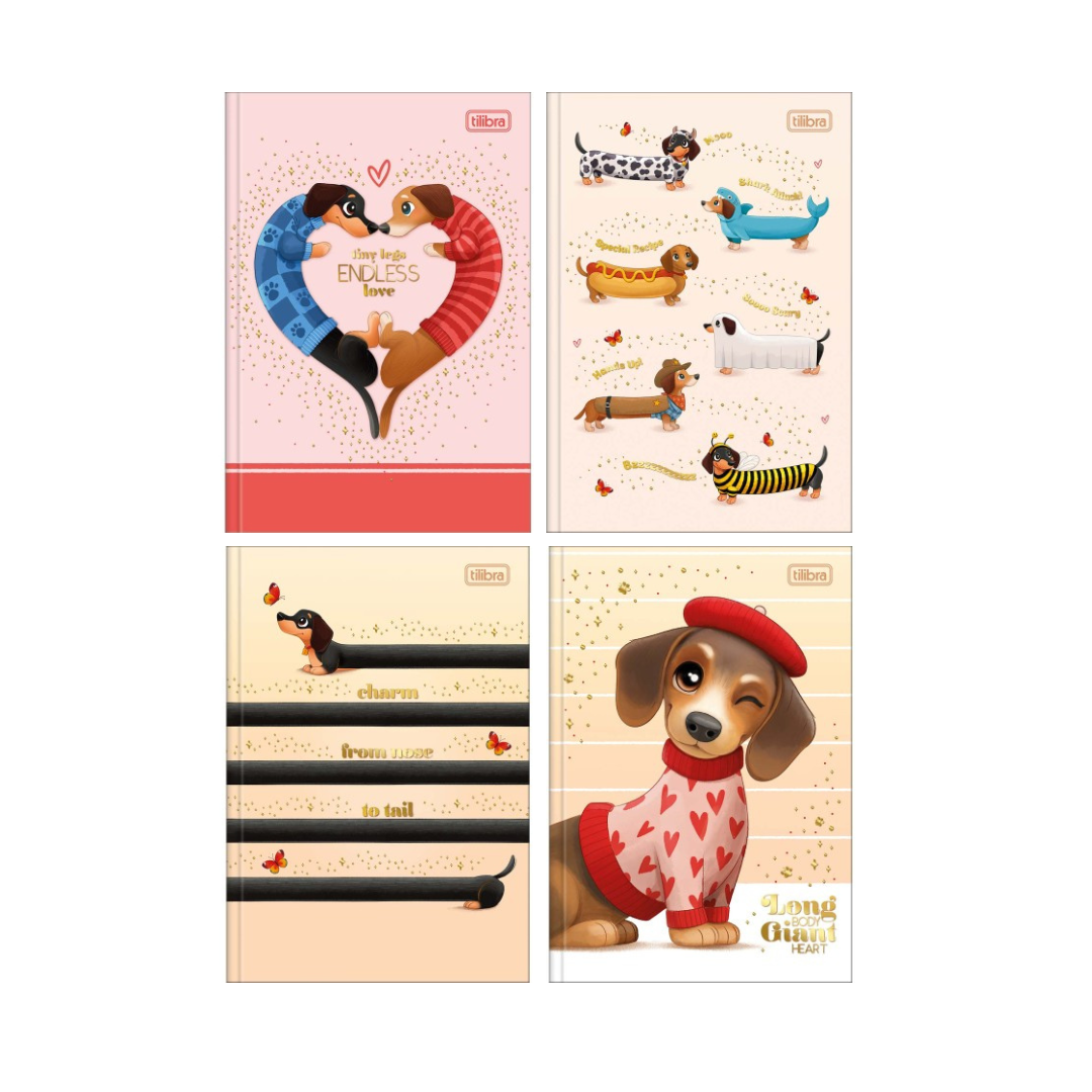 SKU: 41901O Caderno Brochura Capa Dura 1/4 Brownie 80 Folhas da Tilibra é perfeito para você que busca uma opção para organização da rotina de estudos com visual com ilustrações divertidas dos cachorrinhos mais fofos.