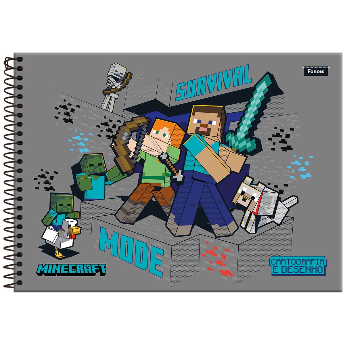 Caderno de Desenho Capa Dura Espiral 80fls Minecraft- Foroni