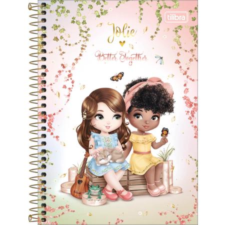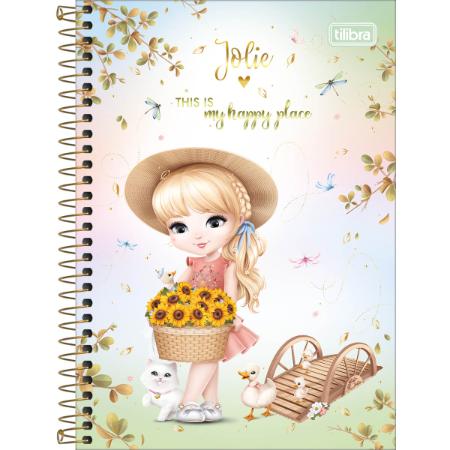 O Caderno Espiral 1/4 Jolie 80 folhas possui capa dura com detalhe metalizado, parte interna decorada, folha com adesivos, folhas pautadas decoradas e espiral colorido.