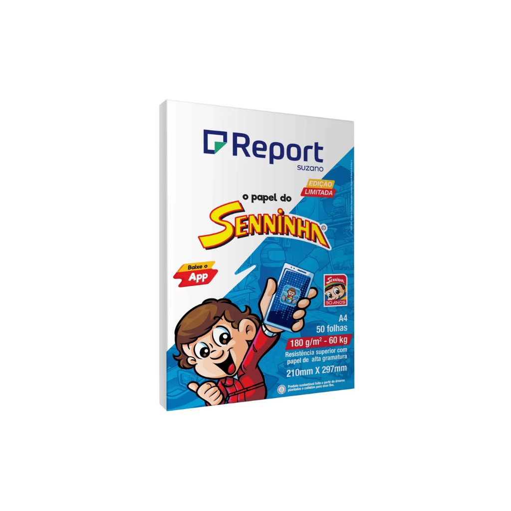 SKU: 655Report Senninha; Garantia de ótima performance em todo tipo de atividade como escrever, reproduzir e imprimir. Superfície resistente, corte perfeito e absorção equilibrada que permite o melhor deslizamento na impressora evitando desperdício de tinta. É produzido a partir de florestas 100% plantadas e renováveis. 99,99% não atolamento em impressoras