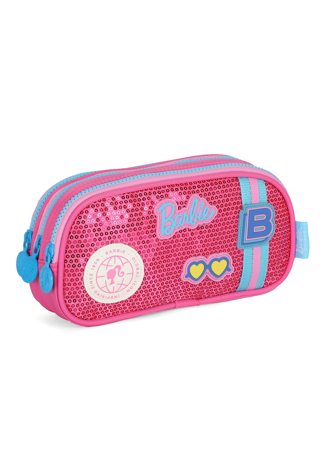 Estojo 3 Divisórias Barbie Lantejoulas Pink- Luxcel