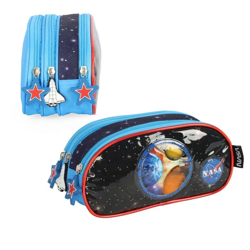 Estojo 3 Divisórias Nasa Azul- Luxcel