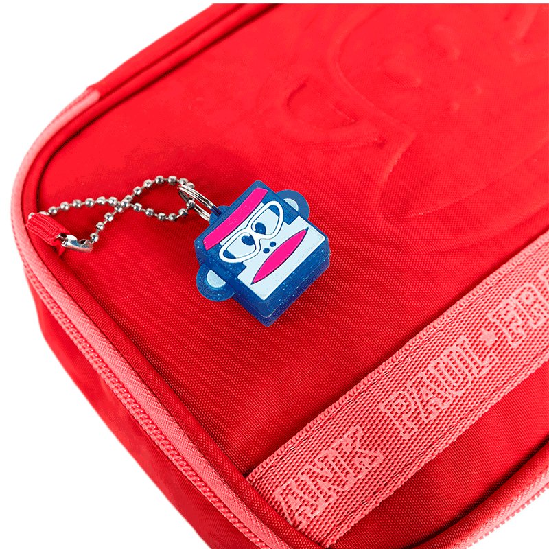 SKU: 40178O Estojo Box Especial Paul Frank T03 Cereja ja chegou com tudo nessas novas cores! Produzido em Crinkle Náilon, um material resistente, possui divisória interna, bolso interno com zíper para guardar pequenos objetos e fechamento principal por zíper. Além disso, tem também tiras de elástico, para prender lápis e canetas, deixando tudo muito mais organizado e fixo, sem sair do lugar. Você ainda ganha um chaveiro do simpático macaquinho Julius para enfeitar seu estojo (as estampas e desenhos são sortidos, conforme a disponibilidade do chaveiro, não sendo opcional a escolha do modelo)