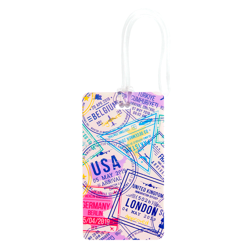 SKU: 41726Com estampa exclusiva, o Identificador de Bagagem Colorido – Stamps é leve e fácil de limpar. Feito de ABS e com formato retangular, ajuda a destacar sua bagagem em meio a tantas, tornando sua viagem mais prática e organizada.