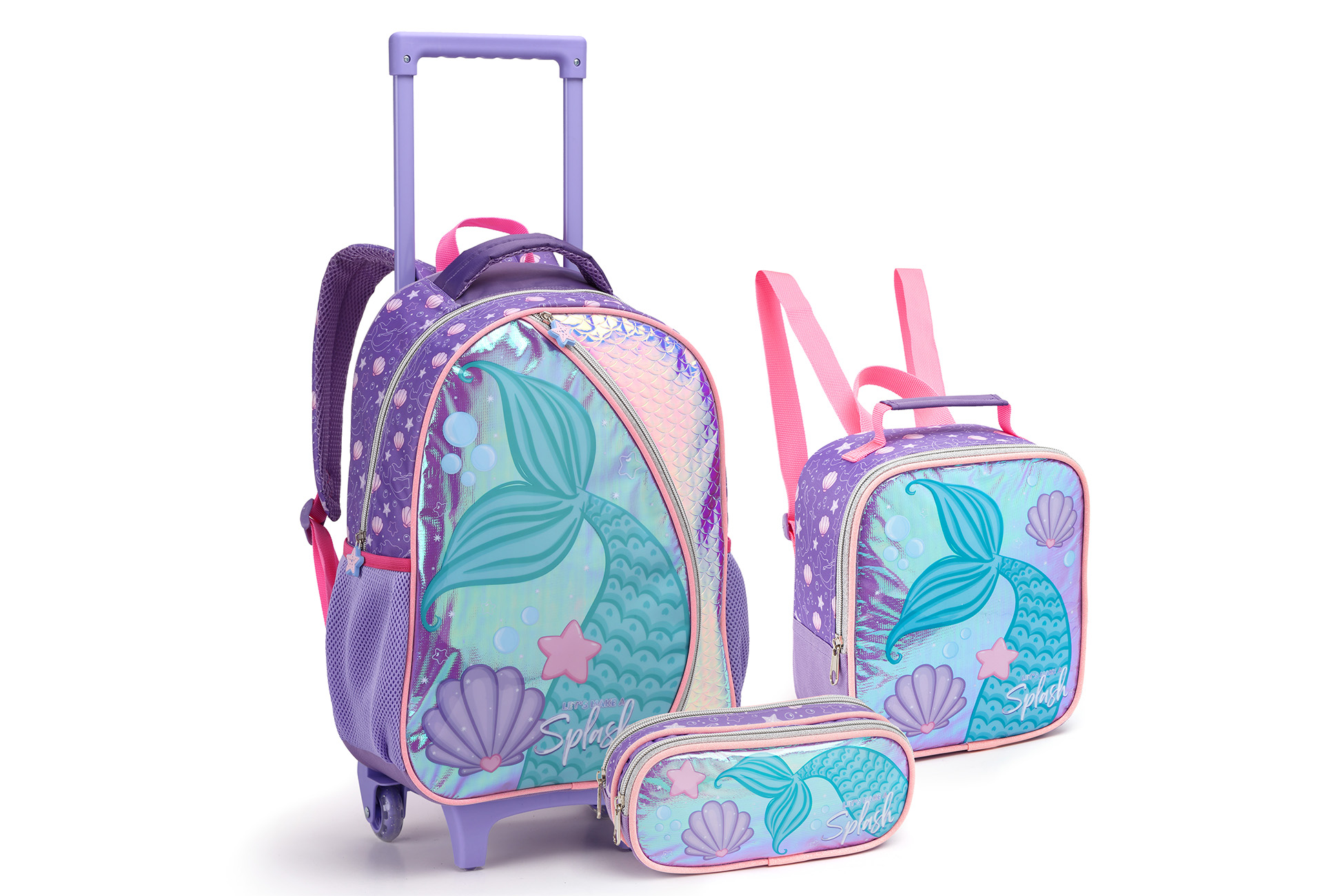 Kit Mochila de Rodinhas/Estojo e Lancheira Sereia Splash- Seanite
