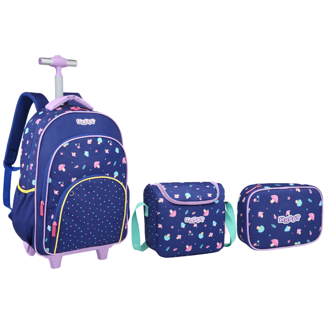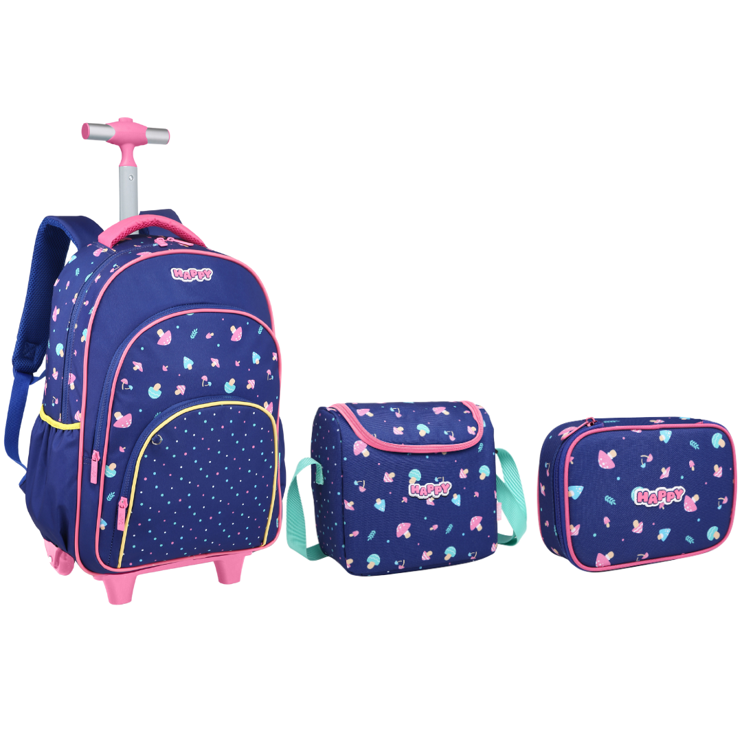 Kit Mochila de Rodinhas/ Lancheira/ Estojo Happy 26- Fênix