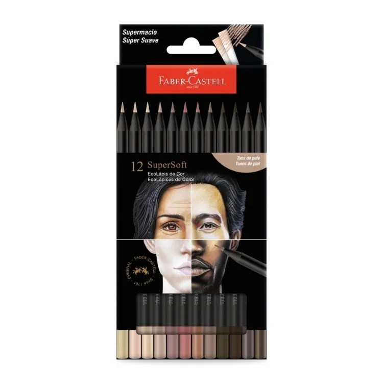 SKU: 42396A família SuperSoft está de cara nova! São 12 tons de pele que valorizam a diversidade étinica-racial. Com mina super macia, cores mais vivas e excelente cobertura, pinta papéis claros e escuros. Selo de originalidade mostrando o pioneirismo e design exclusivo Faber-Castell. Produzido com madeira 100% reflorestada, certificada FSC- Forest Stewardship Council.