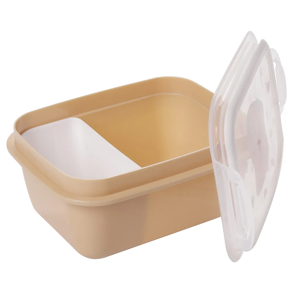 – Com a divisória removível é possível organizar dois tipos de lanche/alimentos em um único recipiente, otimizando espaço na lancheira ou bolsas térmicas e de passeio.